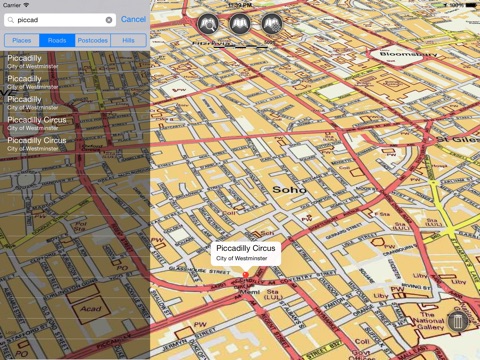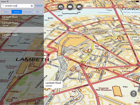 - Offline search functionality with searchable locations (places, roads, post codes and hills). (For the place search a locations latitude and longitude is accurate to 0.1 of a minute of the centre point of the 1x1 km National Grid square in which the name falls)