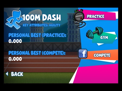 Compete with your friends and family on Facebook to see who has the best times, longest throws, and highest jumps! Post your scores and represent your home country with your superior athleticism and sportsmanship. When medals are given to the strongest competitors, will you be on the stage or in the crowd? The choice is yours!"