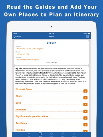 Get comprehensive information with full Wikipedia articles for all the major tourist attractions.