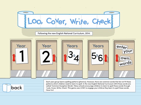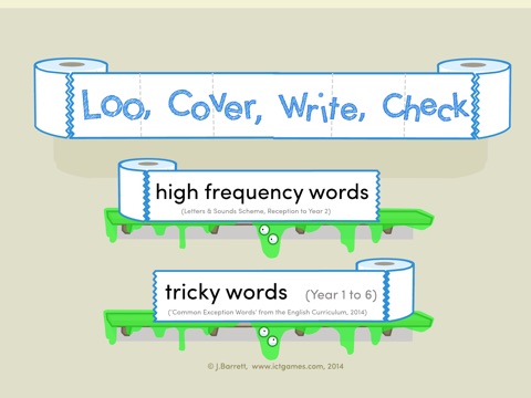 This is an exciting and silly spelling game where you can use the words provided or enter your own homework words instead. Learn to spell by using Look, Cover, Write and Check. Visit loos around the world, spelling tricky words as you go. This game includes high frequency words (from Letters and Sounds) and the Common Exception Words for Years 1 through to 6, (English Curriculum, 2014). You can even enter your own words, perhaps the ones from your homework. After completing each level you can use your loo brush lasers to play a reward game. This game has been designed by a teacher with 16 years experience.