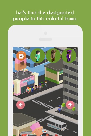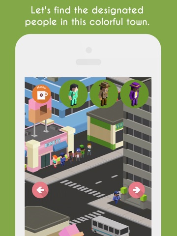 Lets find the designated people in this colorful town. If you find them, touch the screen!