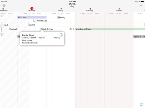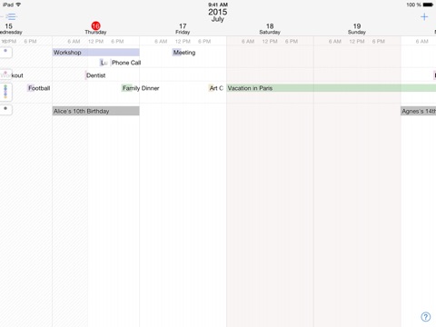 - A single elegant and intuitive timeline-based overview of your calendar (no more flipping between different views)