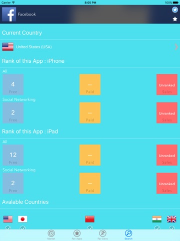 + Overview ranking of an app : across categories and countries.