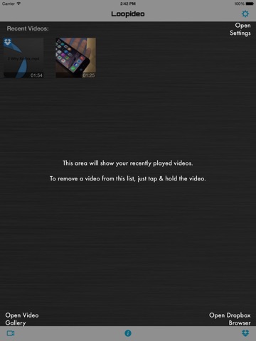 • Play videos in an infinite loop from your camera library, Dropbox, or OneDrive accounts.