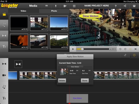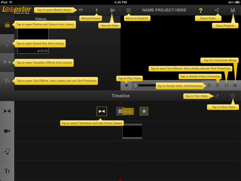 Loopster is the world’s easiest to use HD video editing app! EZ Editing technology lets you rotate, crop, splice, zoom and add sound effects to your standard or HD videos directly from your iPhone or iPad. Advanced editing features such as text, bubble text, title screens, and our revolutionary slow motion effect are also included. You can even record sounds and video directly from the app.