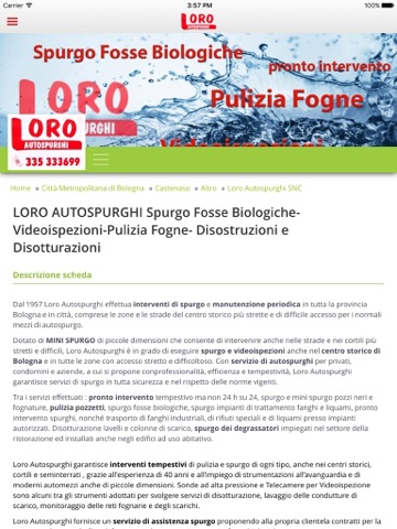 Dal 1957 Loro Autospurghi effettua interventi di spurgo e manutenzione periodica in tutta la provincia Bologna e in città, comprese le zone e le strade del centro storico più strette e di difficile accesso per i normali mezzi di autospurgo.