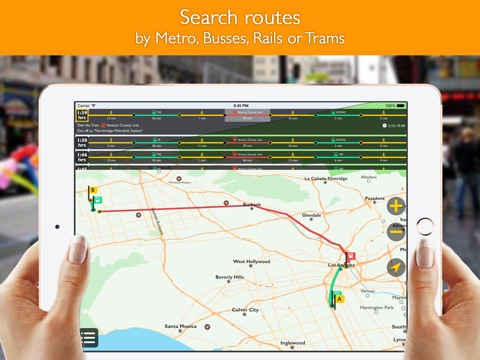 • Use the Los Angeles City Offline Map Route planner to plan your journey by bus, metro, trams or railway to get from one place to another within Los Angeles, quickly and cheaply.