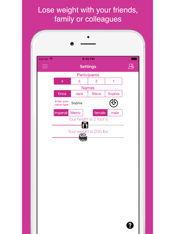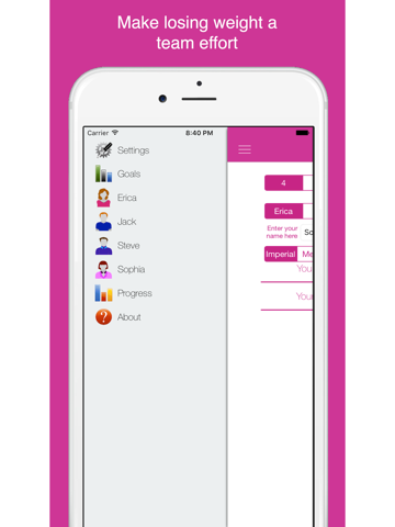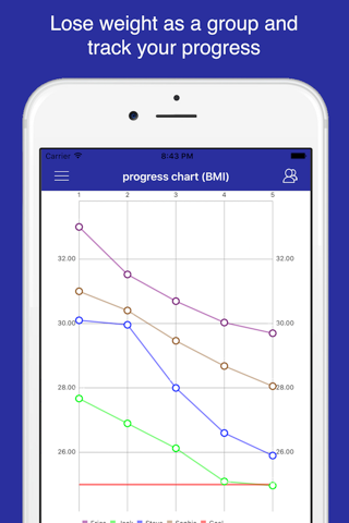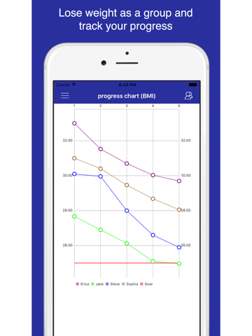 This app tracks your weight and displays your group progress in a chart. Who will be the first to reach their goal.