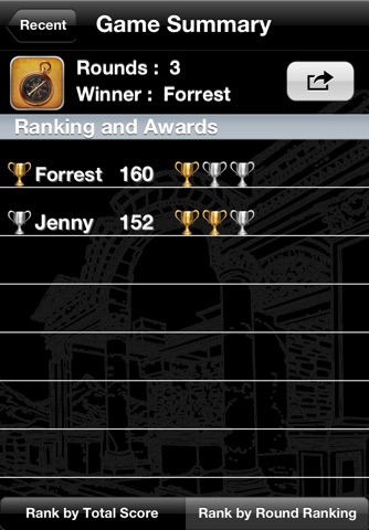 - show the summary for multi-rounds game, including total scores and rank awards;