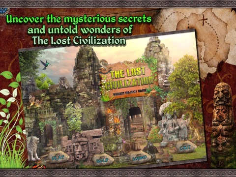 PlayHOG presents The Lost Civilization, one of our newer hidden objects games where you are tasked to find 5 hidden objects in 60 secs. Your score is tied with a multiplier that increases as you find the right hidden objects, but beware, make a mistake and it will reset to 1. Try to get the highest score as you try to find all 400 hidden objects in The Lost Civilization.