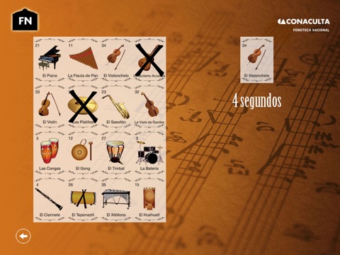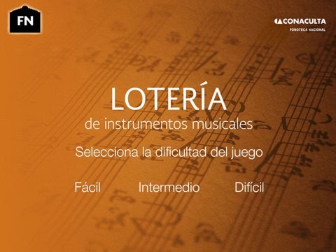 La fonoteca nacional trae para ti el juego Lotería Musical, en este juego podrás divertirte jugando el ya clásico juego de lotería, pero esta vez con instrumentos y sonidos musicales, revisa en tu tarjeta si el sonido esta, juega mas, acumula puntos y aprende como suenan los instrumentos.