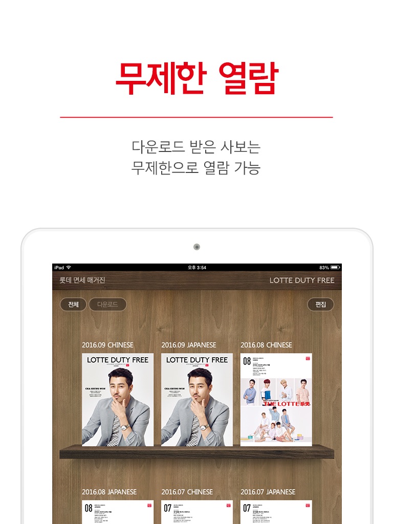 월간 [THE LOTTE]는 롯데면세점 VIP 고객을 위한 쇼핑&라이프스타일 매거진으로, 내국인뿐 아니라 한국을 찾는 중국, 일본 관광객에게 쇼핑과 한국적인 문화 컨텐츠를 제공하고 있습니다. 중국판과 일본판 두 종류로 발행하는 [THE LOTTE]는 매거진을 통해 다양하고 풍부한 쇼핑 정보와 함께 한류를 만끽할 수 있는 한국적인 라이프스타일을 생생하게 경험할 수 있습니다. [THE LOTTE]는 온∙오프라인을 통해 보실 수 있습니다.