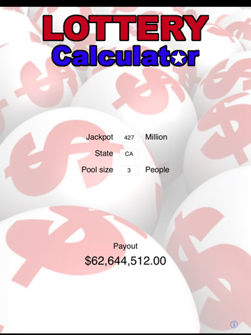 Let the Lottery Calculator figure out how much money you could walk away with from the office lottery pool. Just plug in the lottery jackpot, state you reside in and number of co workers that are in your lottery pool and cha-ching-- you know if you can quit that 9 to 5 drudgery.