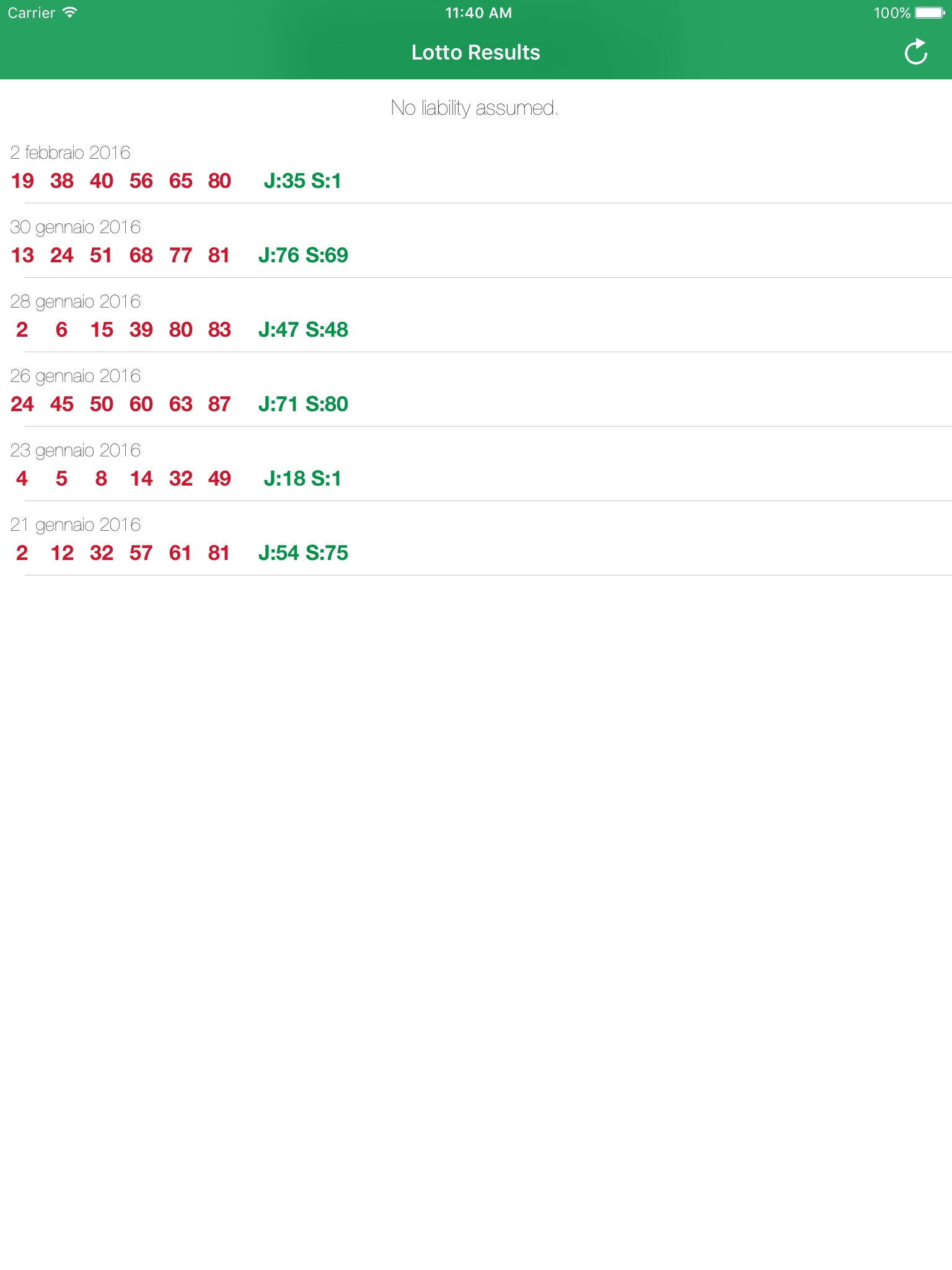 - Shows the last draw results of the Superenalotto Lotteria