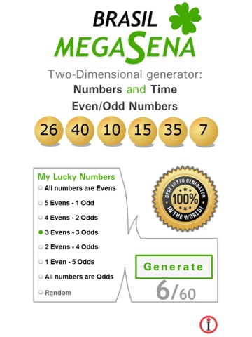 This application has no link in no way with Brasil Mega Sena organism and it does not allow to participate in the official game of Brasil Mega Sena.