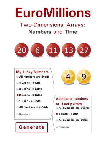 This app helps players to choose numbers for EuroMillions draws.