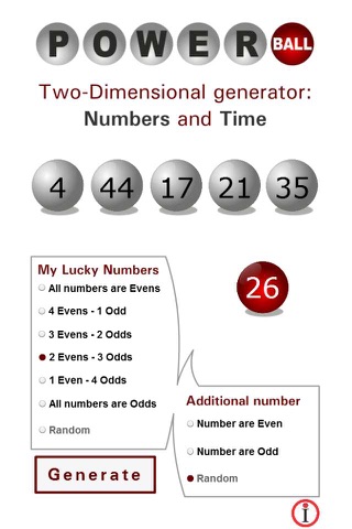 In each drawing, five white balls and one red ball are chosen from two different machines. For winning the game, you have to match at least three white balls and/or the red ball. While you are using this app, you can select the number of even and odd numbers to be generated by the app. There is also an option available for selecting random lucky numbers and some additional numbers; however, that can also be generated in a certain time period.