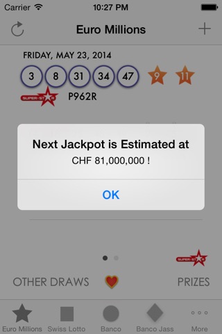 + Your tickets can be entered and saved in the application, and will automatically show any amount won, if applicable. This includes the Plus, Bonus numbers, Replay and Joker numbers for the Swiss Lotto.