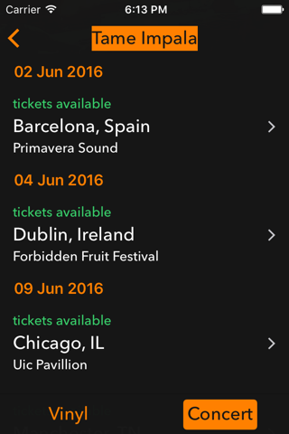 Just digit the name of your favorite Artist and check for all the vinyls and concerts.