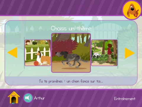 Dans des situations te mettant en scène avec un chien, plusieurs attitudes te sont proposées. Choisis celle qui te semble la mieux adaptée. Tu apprendras la bonne attitude à adopter afin de bien réagir face à un chien. Attention, le temps que tu répondes, le chronomètre tourne. À toi d’être le plus rapide !