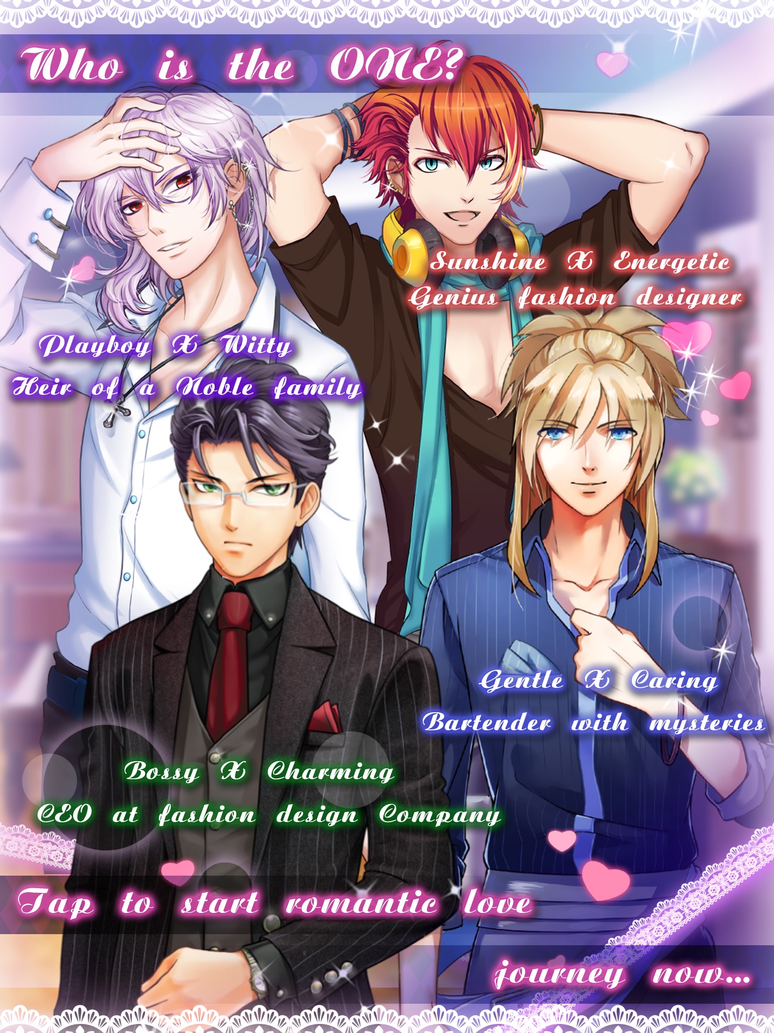 The sadistic C.E.O, The mysterious bartender, The lovely fashion designer and the blue-blood playboy… Who is the one for you?