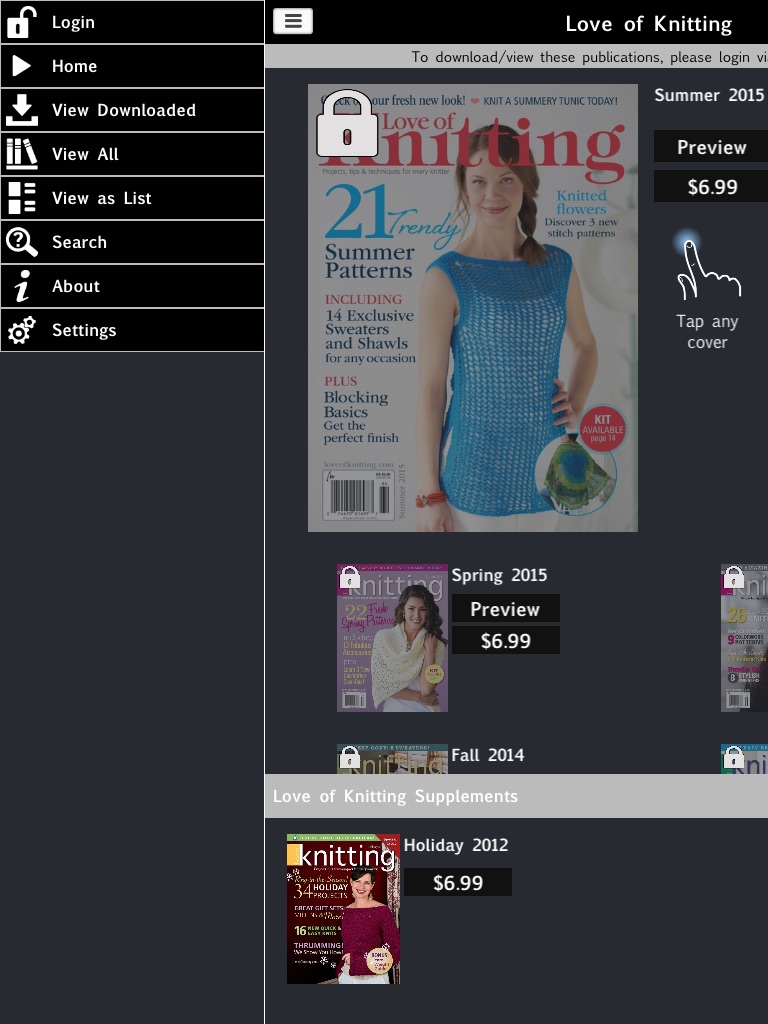 I have tried everything to get this app to work. Ive purchased a couple of magazines, and was going to purchase a subscription, but honestly, Ive wasted my money!!!! I cannot access the magazines Ive bought!!! Ive even contacted app support, with no response. Im not happy.... I have EVERY knitting app there is, and theyve lost a good paying customer. POOR customer service would be better.... I cannot get ANY customer service at all.
