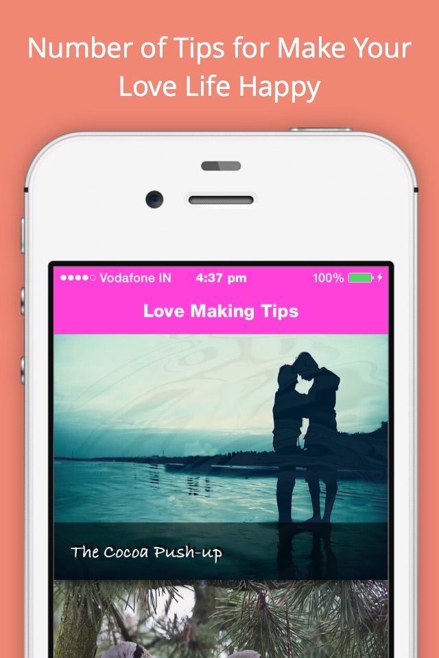 This magical iPhone application brings lots of Love Making Tips that contains but not limited to: