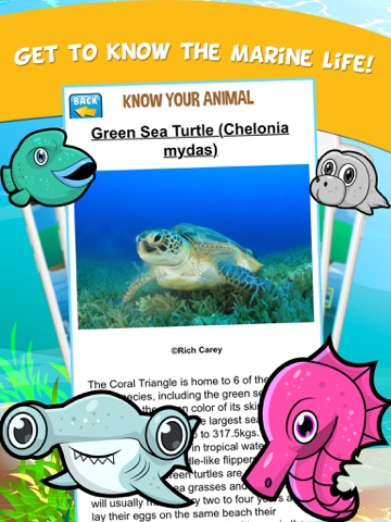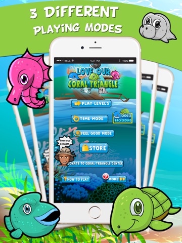 Help save the rainforest of the sea by getting these endangered Coral Triangle species off the endangered species list. Be a good conservationist and get these marine animals off the endangered species list by lining identical animals three or more vertically or horizontally. Conserve the Coral Triangle ecosystems(reef, seaweed and mangrove) by exchanging your good volunteer badges for hints, sotong or good fishermen!