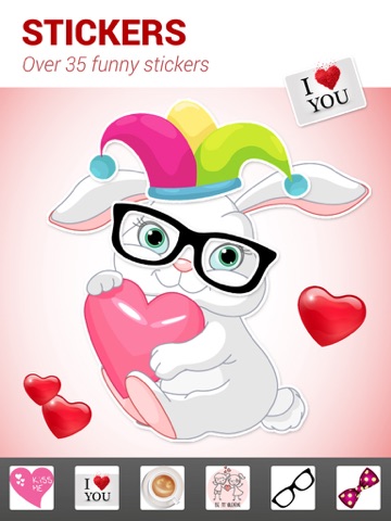 Wanna surprise your sweetheart at St. Valentines day? Our new collection of Valentines Day romantic frames, stickers and emoticons is perfect for lovers, for couples, and for all people, who cherish the wonderful feeling of love. Create a love card with various love quotes like "I love you", "Te amo", etc. Send it instantly to your love.