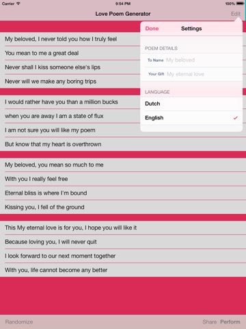 - Automatically generate up to 4,294,967,296 love poems