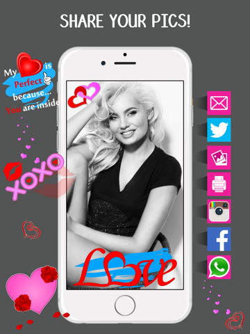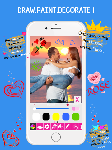 Spread your love, decorate your pictures with over 280 free romantic stickers/quotes based on different themes. You can share them on all social networks.