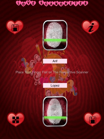 Just enter your name and age, and then place both of your fingers on the scanner button at a time. Hold till scanning and it will test your compatibility of love with your partner.