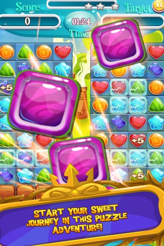 Swipe & smash sugary sweets by connecting pop candies into chains for your fruity friends to fill their jelly bellies puzzle. Float through cotton candy farm clouds and over the rainbow river as you explore the luscious lands. Match your way to sweet freshness jelly gummy victory!