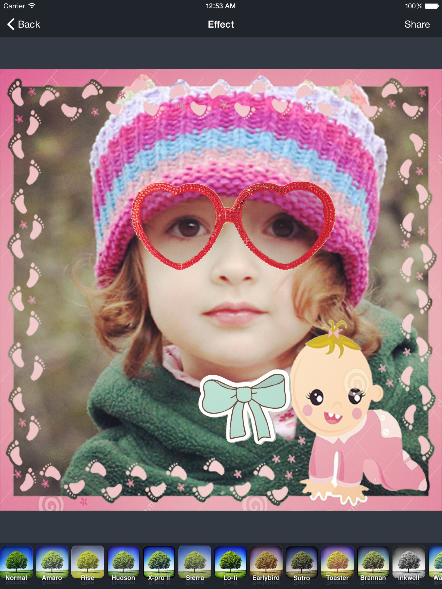 + 20 unique frames, 50 stickers and 7 unique effects.