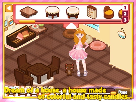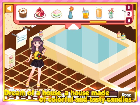If you could have a chance to create a chocolate made of colorful candies, how would you decorate it? Well, this game is a chance for you to design the entire house with candies you have been dreamed of. Bedroom, living room, kitchen and garden, all places are up to your imagination!