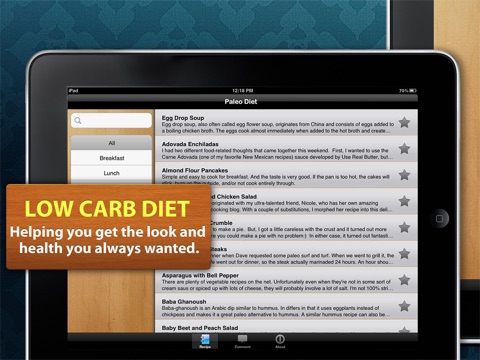 Most of the recipes are wonderful.The app is worth buying but it does contain some recipes that have quite a few carbs in them. There are tons of low carb recipes still. It would be great to add more categories so it is easier to look through them. Over all I would purchase again. The best low carb recipe app for variety and quality of recipes. Im a chef just for reference.