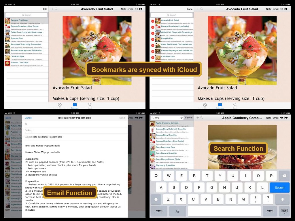 * Ability to BOOKMARK selected recipes for easier reference