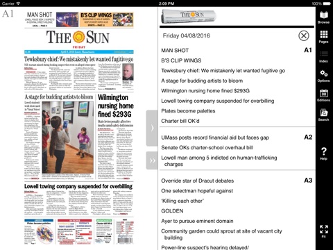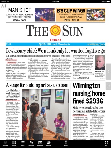 Our eEdition iOS app lets subscribers read The Sun of Lowell, Massachusetts, on either iOS device with all of the stories, ads and photos shown exactly as it appears in print. The app uses the iOS multi-interface touch to provide fast and easy navigation and natural paper-like reading experience. Readers use their current eEdition account login to access current and 30 days of back issues.
