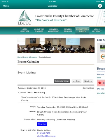 Get connected with the Chamber of Commerce in Bucks County, Pennsylvania! This app allows users to view Chamber events and share them to their calendar, Facebook and/or Twitter. It also provides users with a directory of Chamber members and businesses, allowing them to search by name or category, call, and get online info and/or directions when needed. Whatever the use, this app will be sure to keep users active and informed about the great things happening at the Lower Bucks Chamber.