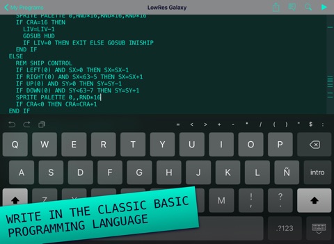 Play homegrown retro games and program your own directly on your iPad or iPhone!