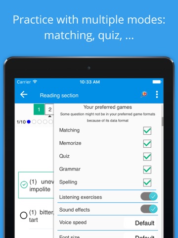 Thousands of learners has been using TOEFL® Test Pro as a powerful tool to enhance their learning skills. With an aim to keep you in a good English language shape, our app furnishes learners provides manifold TOEFL® practice tests and TOEFL® mock test. Your everyday-learning process will be fun and easy!