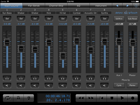 lpTouch provides mobility and touch screen controls for Logics commonly used functions on both your iPad and iPhone/iPod touch. With lpTouch & Wi-Fi, you can control record and playback from anywhere in your studio, edit your software instruments, or adjust effects settings. Tired of trying to manipulate tiny controls on the Logic screen with a mouse? lpTouch offers large, usable multi-touch faders and rotary controls to edit send effects, inserts, plug-in instrument parameters, and EQ settings so you can get just the right sound.