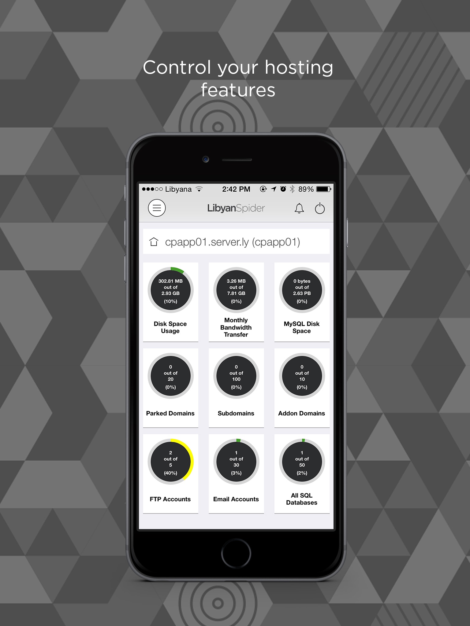 Manage your web hosting using Libyan Spider App for cPanel on the go, all cPanel features are available within your mobile: