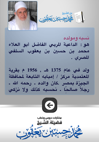 * التطبيق يحتوي على سيرة ذاتية للتعريف بالشيخ وتاريخه الدعوي