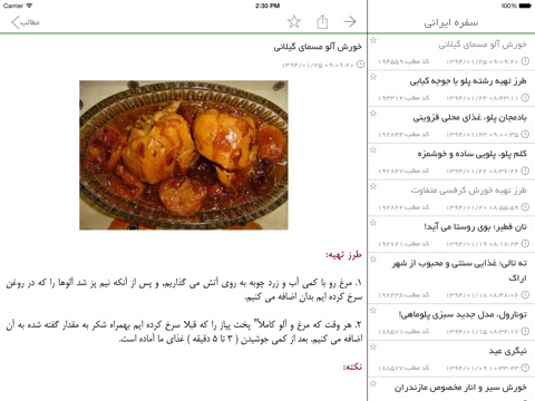 *** به منظور کاهش حجم برنامه ، کافیست دستور غذا را یک بار در حالت دارای اینترنت بخوانید تا در حالت آفلاین نیز آن مطلب قابل استفاده باشد.