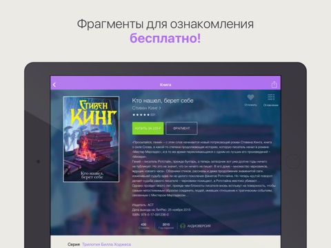 · Access to 100,000 books in your favorite genres: fantasy, science fiction, business, Russian literature, DIY, romance, mystery, action, business, self-improvement, psychology, and much more.