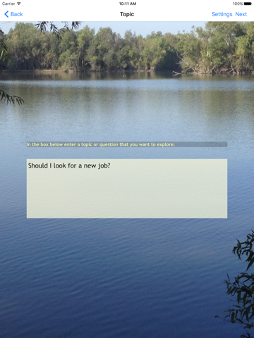 Let your mind soar with creative thinking and brainstorming! Each journey through this unique app allows you to explore your innermost thoughts as you develop insights and achieve clarity of purpose. The zen-like interface helps you to relax and engage in blue-sky thinking.