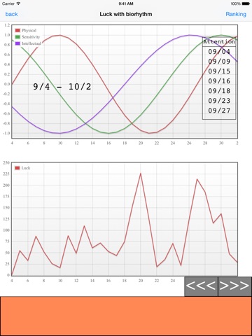 To a main screen, biorhythm of the day and nine face marks are displayed.