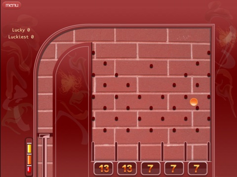 If the ball lands on a box labeled 7, you win the round. If it lands on a box labeled 13, you lose. Every time you win a round, your score goes up; every time you lose, it goes back to zero. Can you win seven rounds in a row to get a Lucky 7?