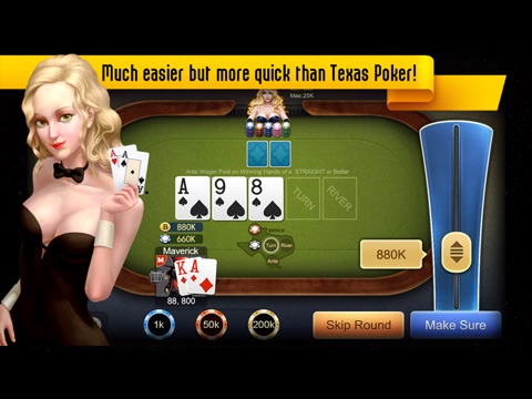 The object of the game,for Player and Dealer alike,is to make the best five-card poker hand using any combination from their two-card hand and the five community cards(board cards).There is no Player-to-Player competition;Player compare there hands to the dealers.